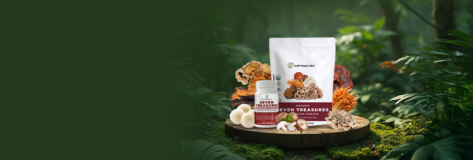 Seven Treasures Organic Mushroom Powder and Capsules