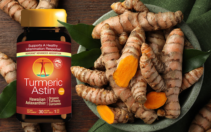 TurmericAstin® is the ultimate combination of two of nature’s most powerful antioxidants, BioAstin® Hawaiian Astaxanthin® and Organic Turmeric Root Extract (with 95% curcuminoids).  TurmericAstin supports a healthy inflammatory response.*  TurmericAstin contains 530 mg's of Organic Turmeric Root Extract and 6 mg per serving of BioAstin® Hawaiian Astaxanthin®, plus 5 mg of BioPerine® to maximize absorption.