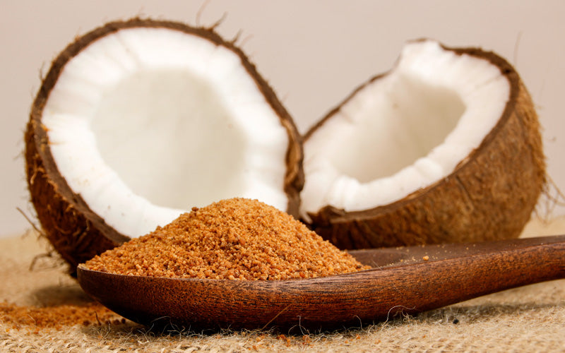 Organic coconut sugar is derived from the nectar in the fruit and bark of the coconut palm (Cocos nucifera). It is a golden-brown, crystalline sweetener often considered a nutritious alternative for brown sugar.  It is produced by heating the nectar, or palm sap, to remove its water content. Once dehydrated, the remaining substance is granulated until it resembles the coconut sugar we all know and love.