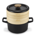 Alva's Nori Cast Iron Dutch Oven Steamer Basket, designed to enhance both your culinary experience and your kitchen’s aesthetics. This 8" Dutch Oven boasts a timeless, elegant look with beautiful bronze knobs that complement its deep, rich color. Coated with three layers of scratch-resistant enamel, it is stain-resistant and easy to clean, ensuring it remains in pristine condition. The included bamboo steamer inserts provide versatile cooking options, allowing you to prepare healthy, flavorful meals with multi-level steaming.
