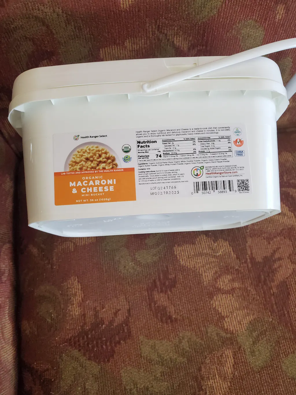 Our Health Ranger Select Organic Macaroni and Cheese isn't just a culinary delight; it's a health-conscious choice too. Packed with organic ingredients, this savory masterpiece offers a guilt-free experience. It contains no wheat, gluten, GMOs or added salt. Our premium macaroni and cheese is also non-China, certified organic and thoroughly lab tested for glyphosate, heavy metals and microbiology. Embrace the goodness of clean eating without compromising on taste. You can savor each bite knowing you're treating your taste buds to the finest organic ingredients. Unleash a world of deliciousness and nourishment in every mouthful – because great taste and good health go hand in hand. Dive into a bowl of goodness with our Health Ranger Select Organic Macaroni and Cheese Mini Buckets today!