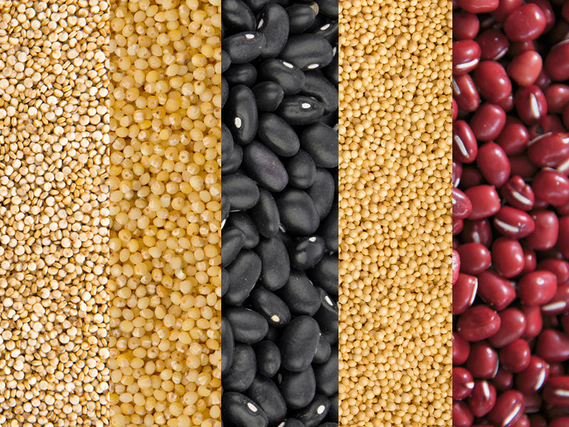 Ingredients: Organic White Quinoa (2LB, 907g), Organic Millet (2LB, 907g), Organic Black Beans (2LB, 907g), Organic Amaranth (2 LB, 907g), Organic Adzuki Beans (2 LB, 907g)