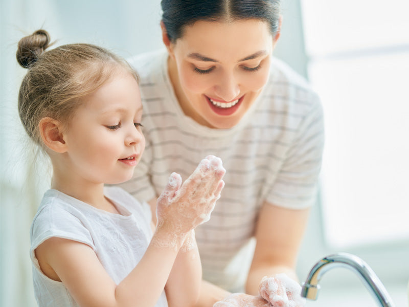 Apply liquid soap to wet skin, lather well, and rinse thoroughly with water.
